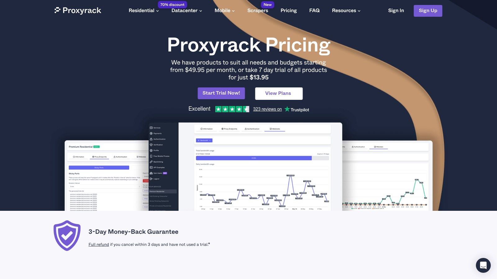 - Trials: Residential proxy plans typically do not include a free trial, requiring an initial purchase to test the service.
