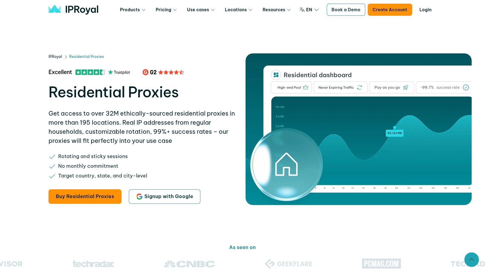 IPRoyal carves out a niche in the proxy market by focusing on accessibility and flexibility, making it an excellent starting point for smaller projects or users new to residential proxies. It offers one of the best rotating residential proxies experiences for those who value low-commitment entry points, with both pay-as-you-go (PAYG) and affordable subscription plans. This model is particularly appealing for testing proxy pools or running short-term data gathering tasks without a significant upfront investment.