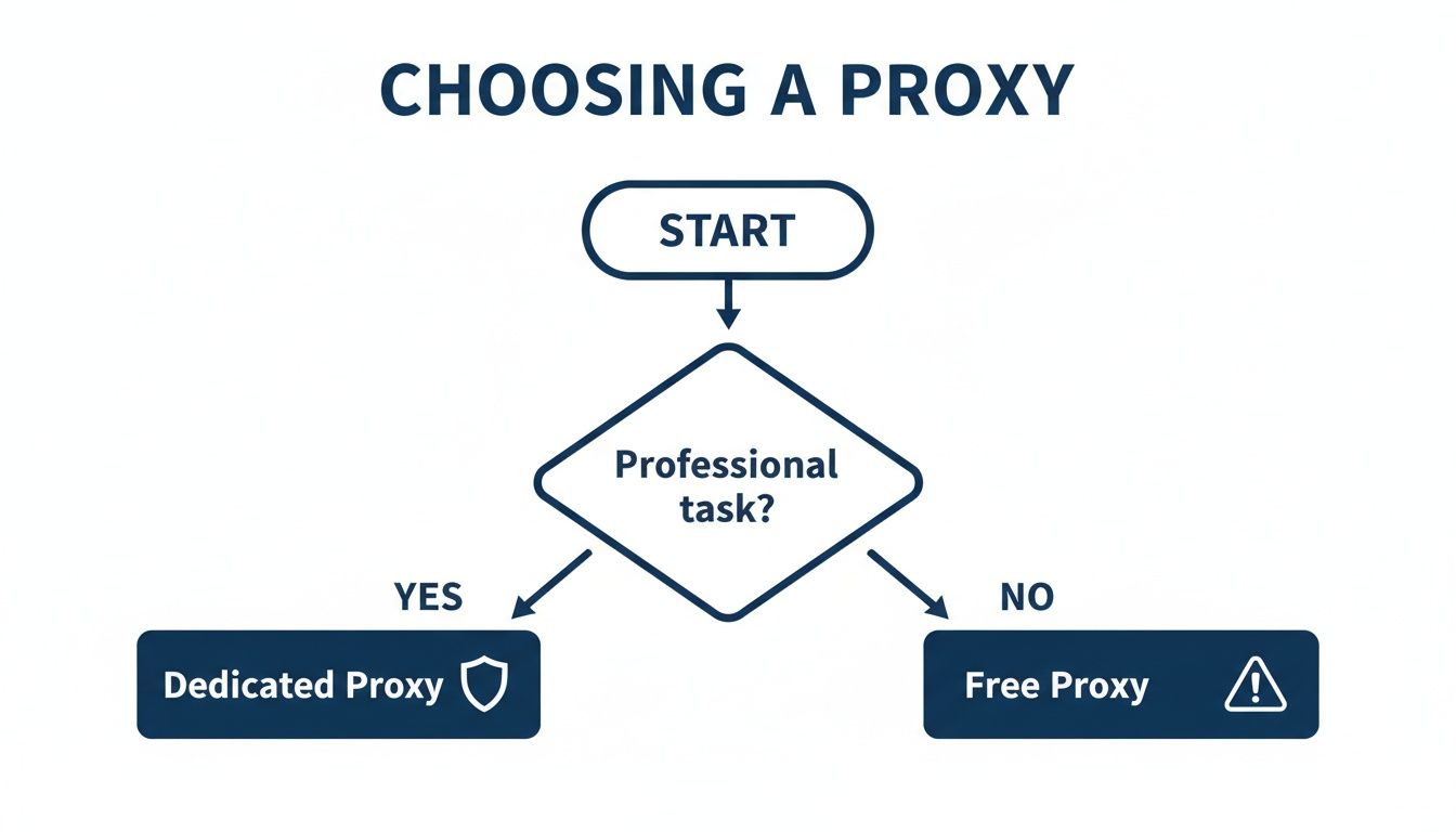 Before you even get to the configuration method, you need to decide what kind of proxy you need. This decision tree can help you figure out if a free or dedicated proxy is the right place to start.
