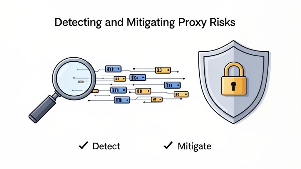 Even with a top-notch residential IP, a simple data leak can compromise everything. As we've covered, transparent proxies can pass your original IP address in headers like X-Forwarded-For. If your proxy service isn't built to handle this, the leak will expose your real location and instantly discredit your verification efforts.